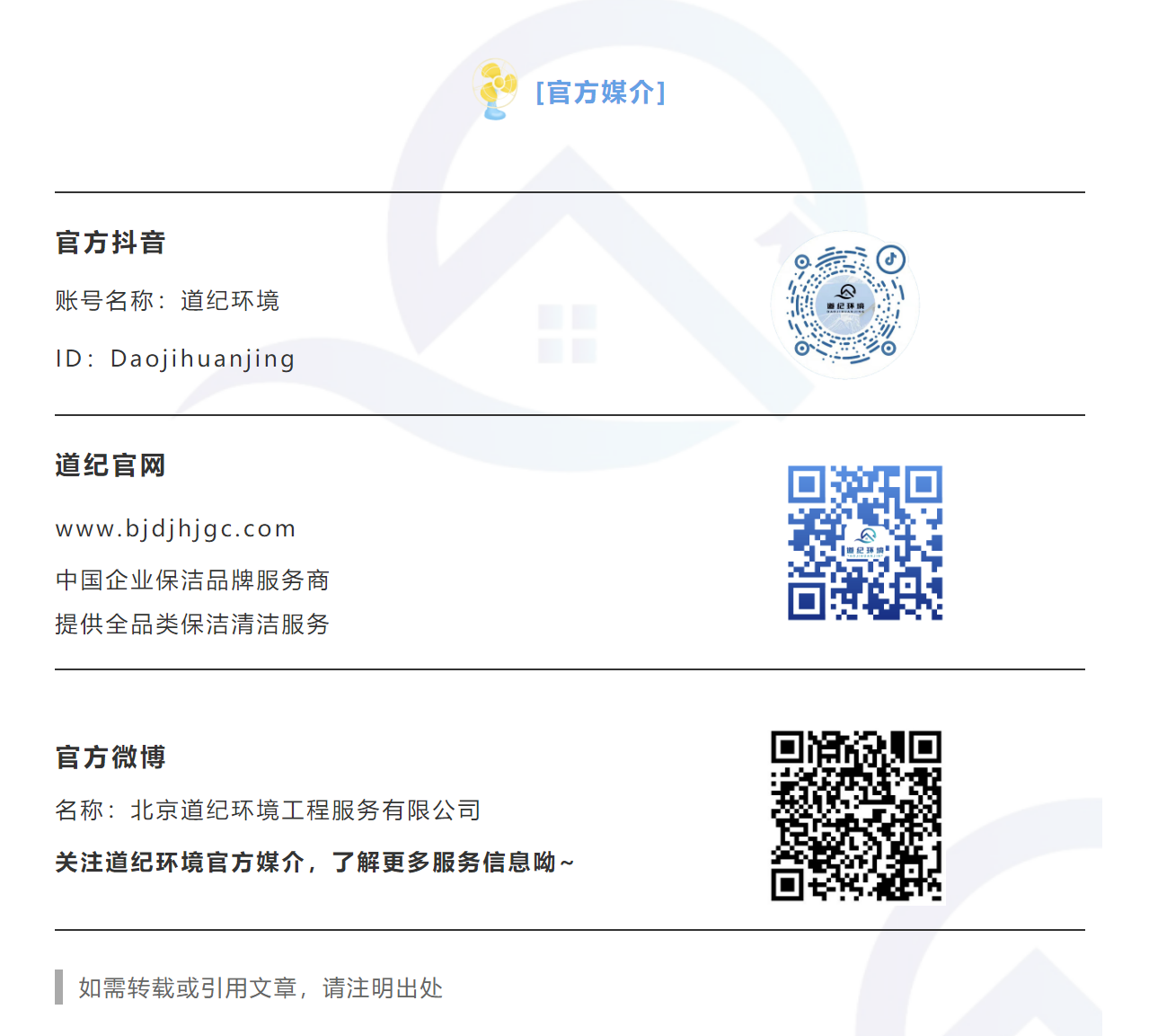 扫码关注北京道纪环境服务有限公司微信公众号、微博、抖音号,查看更多案例信息与视频