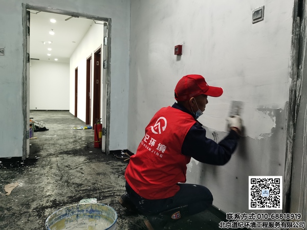 项目难点:烟熏后墙壁呈现黑色状态,需要先对墙面打磨清灰后,再使用乳胶漆刷漆两遍以上。