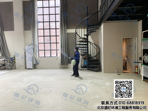 图为道纪环境公司甲醛治理小组正在对室内空气进行治理