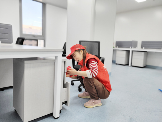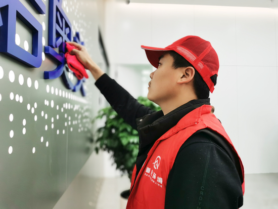 图为我司作业小组正在顶面、墙面、桌面进行清洁