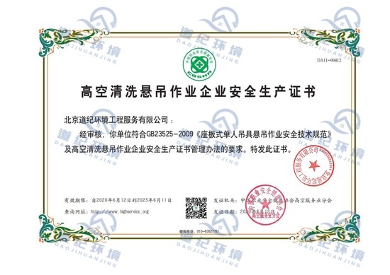 高空清洗悬吊作业企业安全生产证书