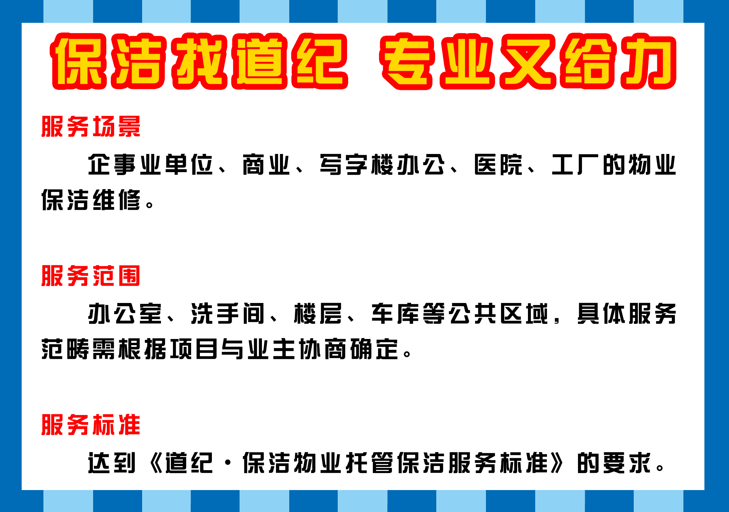 达到《道纪·保洁物业托管保洁服务标准》的要求。